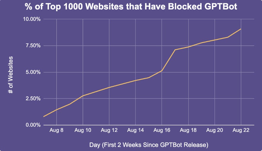 Websites That Have Blocked OpenAI’s GPTBot - 1000 Website Study – (Originality.AI)