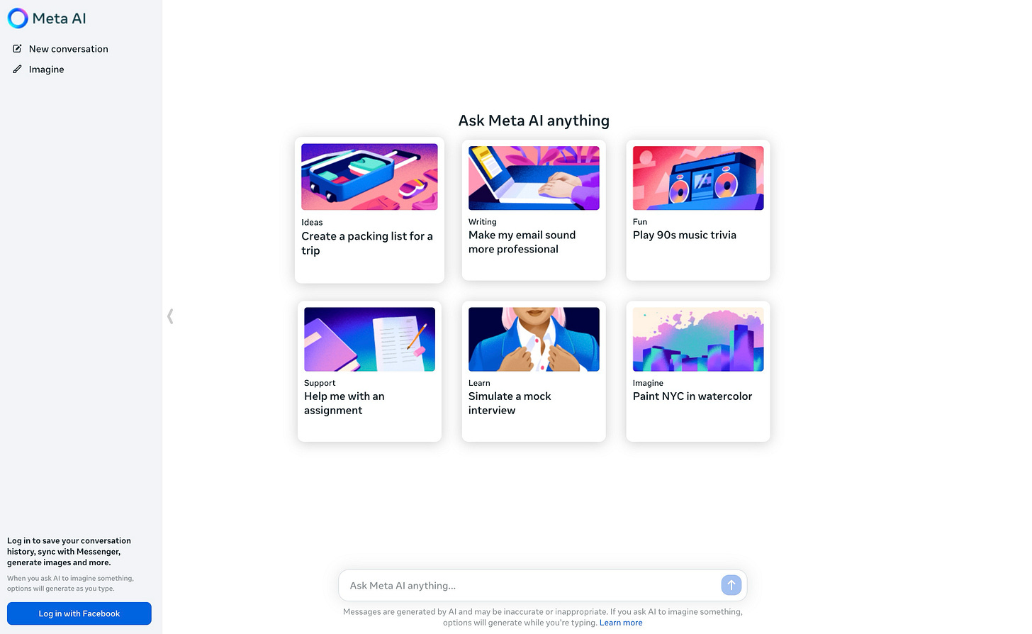 Meta’s chatbot, simply called Meta AI, will now appear in the search bars of Facebook, Instagram, WhatsApp, and Messenger as well as having a standalone assistant hosted on Meta.AI.