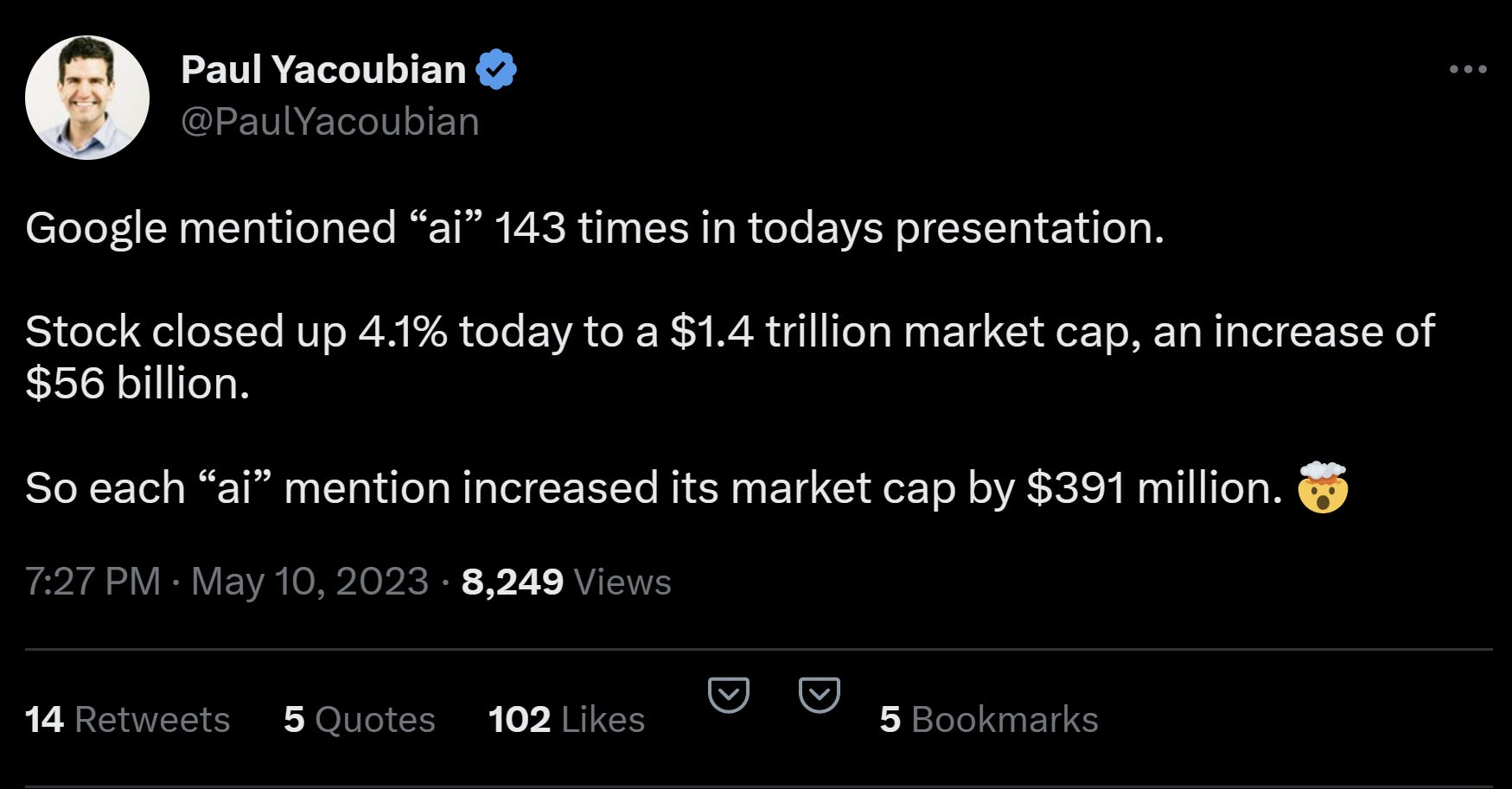 The search giant hosted their massive Google IO event and if you had any doubt that AI isn’t a key part of their strategy, watch this 15 second highlight reel.