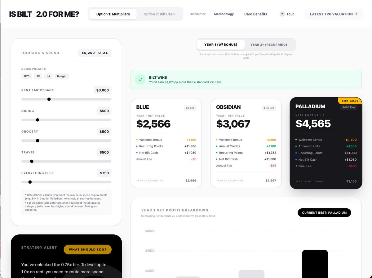 So instead of trying to do the mental gymnastics myself to figure this out, I leveraged Gemini and Claude Code to build an app that leveraged documentation from Bilt and analysis from The Points Guy to help make a decision that made sense for my family’s situation.